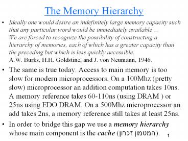 <Notice: Removed> The Memory Hierarchy PowerPoint PPT Presentation