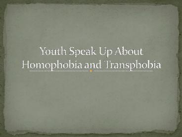 Youth Speak Up About Homophobia and Transphobia PowerPoint PPT Presentation