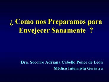 1 Como nos Preparamos para Envejecer Sanamente ?