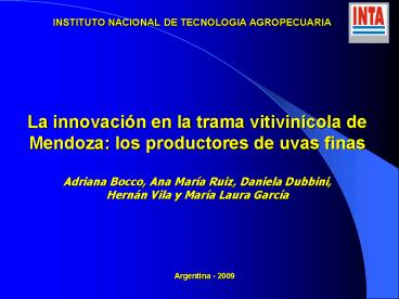 Title: INSTITUTO NACIONAL DE TECNOLOGIA AGROPECUARIA