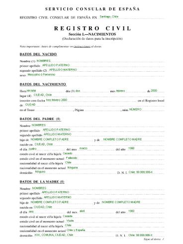 Carnet de Identidad 99.999.999-X