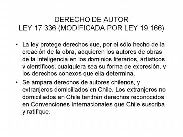 DERECHO DE AUTOR LEY 17'336 MODIFICADA POR LEY 19'166 PowerPoint PPT Presentation