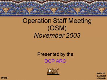 Title: Operation Staff Meeting OSM November 2003