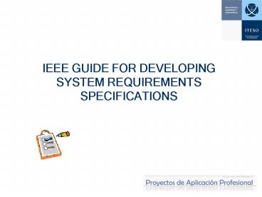 IEEE GUIDE FOR DEVELOPING SYSTEM REQUIREMENTS SPECIFICATIONS PowerPoint PPT Presentation