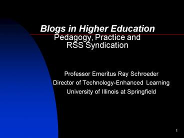 Title: Blogs in Higher Education Pedagogy, Practice and RSS Syndication