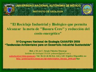 Sustentable Biol. y M. en C. Sergio Palacios