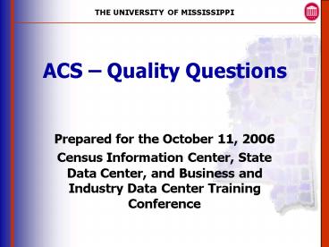 ACS Quality Questions PowerPoint PPT Presentation