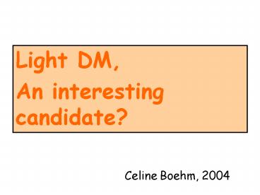 supersymmetry?? - The relic density will be ensured by the Light DM