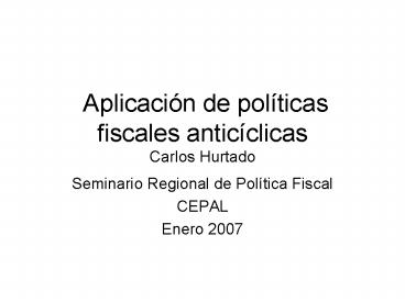 Aplicacin de polticas fiscales anticclicas Carlos Hurtado PowerPoint PPT Presentation