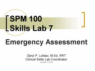 <Notice: Removed> SPM 100 Skills Lab 7 PowerPoint PPT Presentation