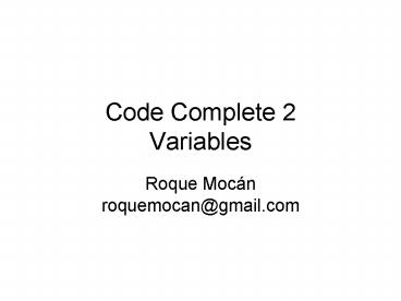 Code Complete 2 Variables PowerPoint PPT Presentation