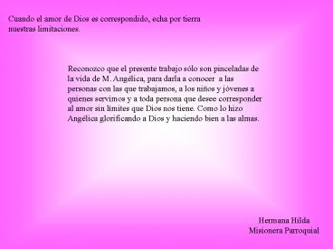 pinceladas de la vida de M. Angélica, para darla