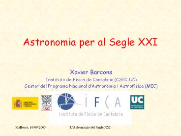 <Notice: Removed> Astronomia per al Segle XXI PowerPoint PPT Presentation