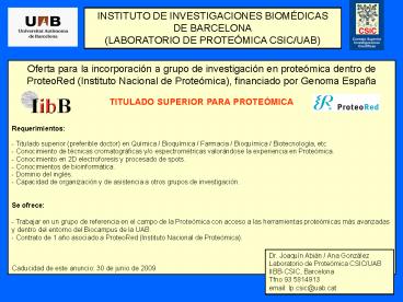 Proteómica CSIC/UAB IIBB-CSIC, Barcelona Tfno 93