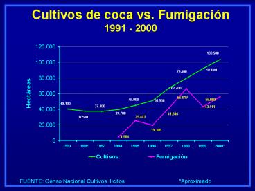 Title: Cultivos de coca vs' Fumigacin 1991 2000