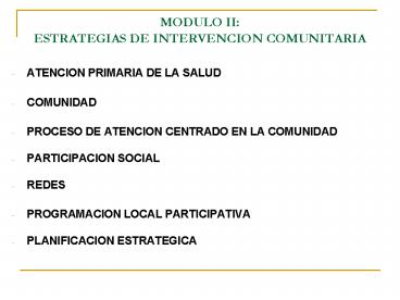 Title: MODULO II: ESTRATEGIAS DE INTERVENCION COMUNITARIA