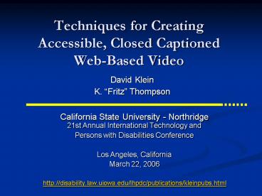 Title: Techniques for Creating Accessible, Closed Captioned WebBased Video