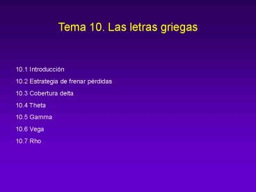 pérdidas 10.3 Cobertura delta 10.4 Theta 10.5