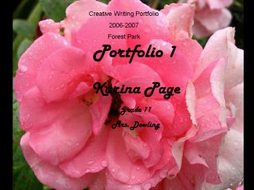 1Creative Writing Portfolio 2006-2007 Forest Park