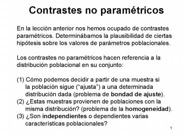 poblacionales. - Los contrastes no paramétricos hacen referencia a