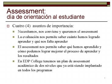 Title: Assessment: da de orientacin al estudiante