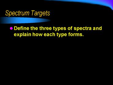 longer wavelength lower frequency. - Red shift Bright line spectrum of elements