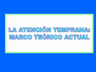 1 LA ATENCIÓN TEMPRANA MARCO TEÓRICO ACTUAL