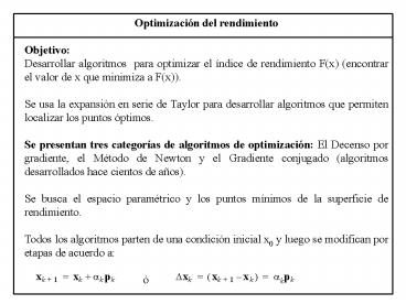 permiten localizar los puntos óptimos. Se