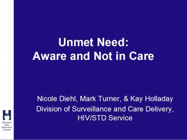 Title: Unmet Need: Aware and Not in Care
