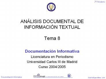 <Notice: Removed> ANLISIS DOCUMENTAL DE INFORMACIN TEXTUAL PowerPoint PPT Presentation