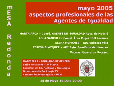 mayo 2005 aspectos profesionales de las Agentes