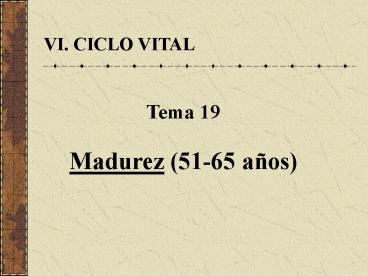 VI. CICLO VITAL Tema 19 Madurez (51-65 años)