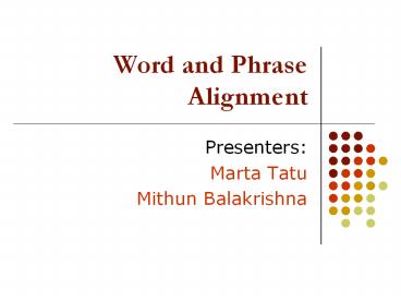 <Notice: Removed> Word and Phrase Alignment PowerPoint PPT Presentation