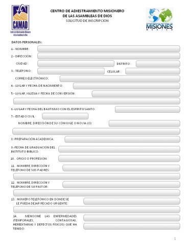 ASAMBLEAS DE DIOS SOLICITUD DE INSCRIPCION
