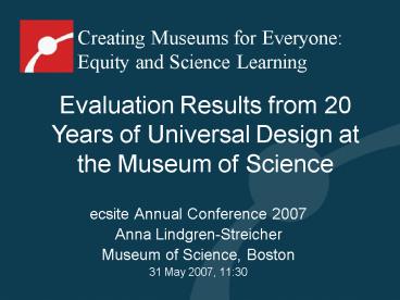 Title: Creating Museums for Everyone: Equity and Science Learning