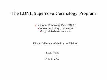 - LBNL G. Aldering, H. Agarval, A. Conley, E.