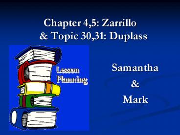 1- Chapter 4,5 Zarrillo Topic 30,31 Duplass