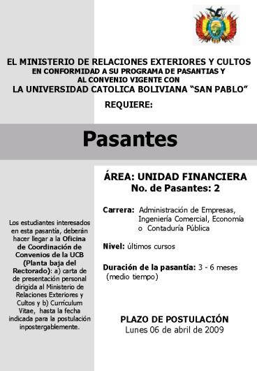 PLAZO DE POSTULACIÓN Lunes 06 de abril de 2009