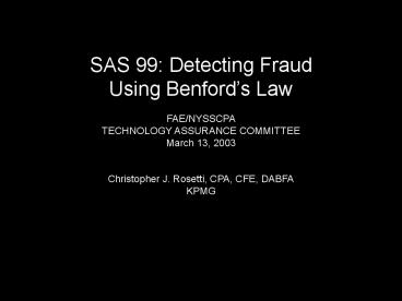 <Notice: Removed> SAS 99: Detecting Fraud Using Benfords Law PowerPoint PPT Presentation