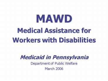 - Must pay MONTHLY PREMIUM to be eligible for MAWD