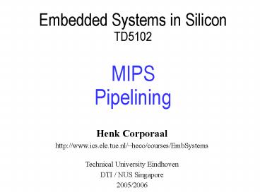 <Notice: Removed> Embedded Systems in Silicon TD5102 MIPS Pipelining PowerPoint PPT Presentation