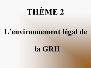 - Lenvironnement légal de la GRH
