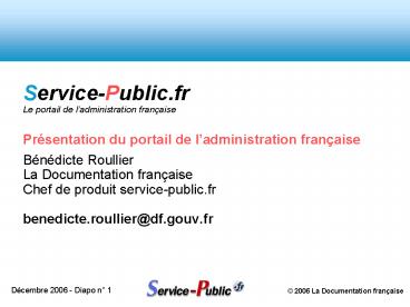 <Notice: Removed> ServicePublic'fr Le portail de ladministration franaise PowerPoint PPT Presentation