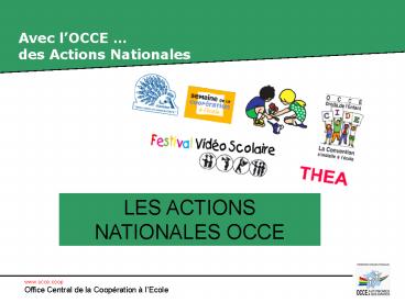 Nationale de l'OCCE, vous pouvez contacter - Votre Association départementale ou Didier