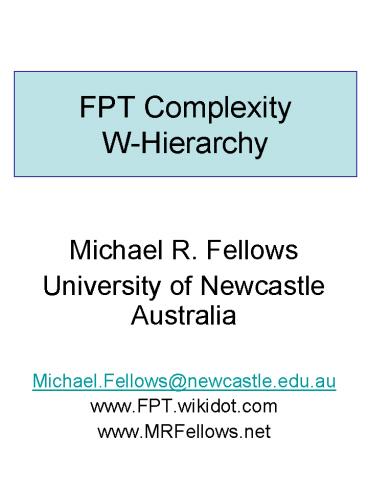 FPT Complexity WHierarchy PowerPoint PPT Presentation