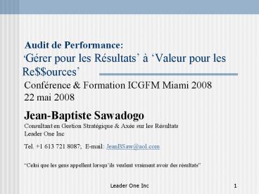 de Développement www.mfdr.org - Leader One Inc, e-mail JeanBSaw_at_aol.com