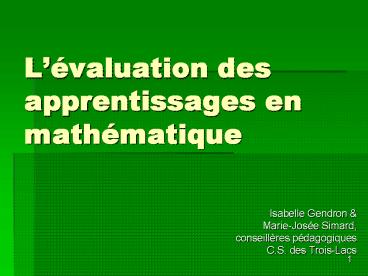 dapprentissage et dévaluation, - En cours de cycle, à partir dun ensemble de