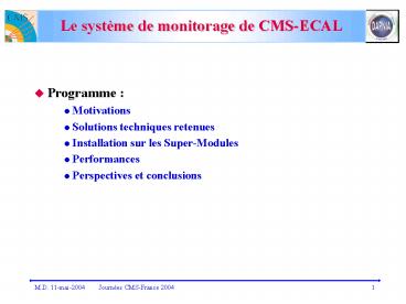 Title: Le systme de monitorage de CMSECAL
