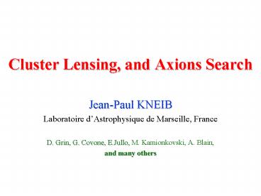 Title: Cluster Lensing, and Axions Search