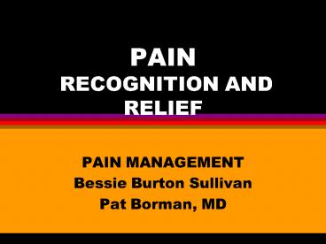 PAIN RECOGNITION AND RELIEF PowerPoint PPT Presentation